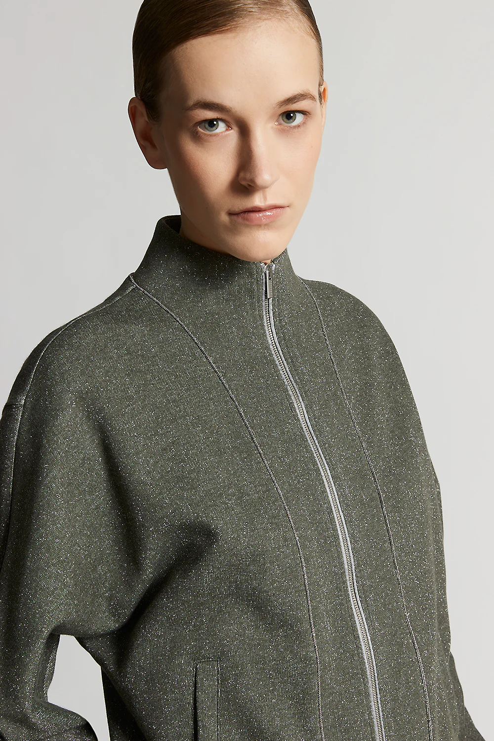 Questa felpa è realizzata in una felpa di cotone lurex garzata, morbida e leggera, pensata per accompagnare i cambi di stagione.