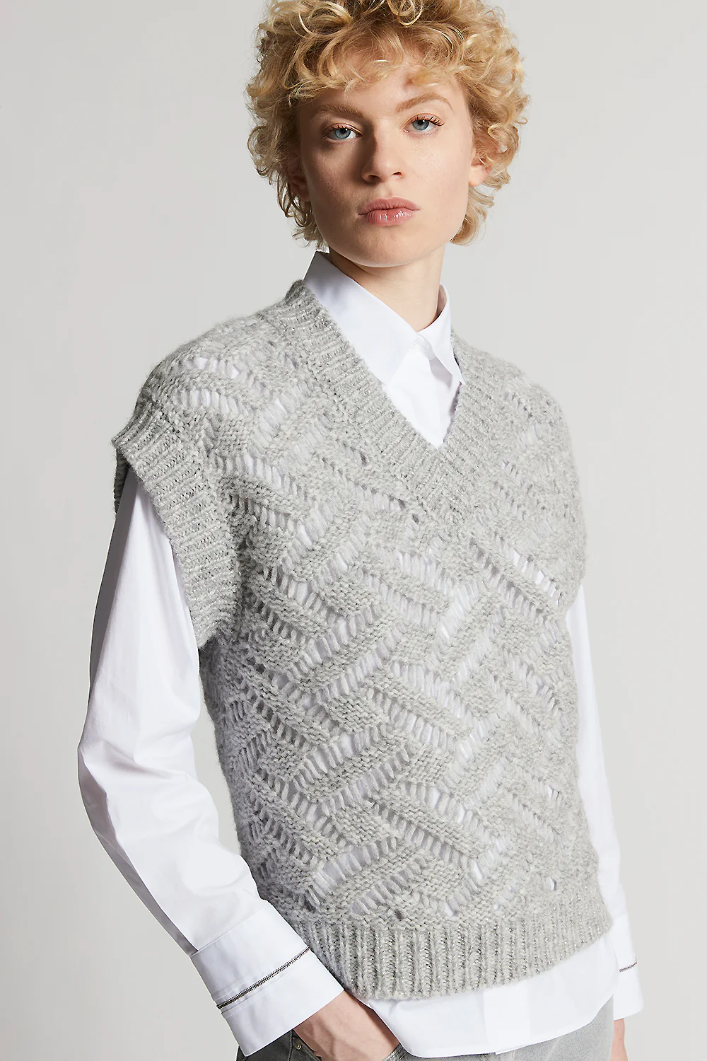 Gilet traforato in filo d'alpaca malfilé